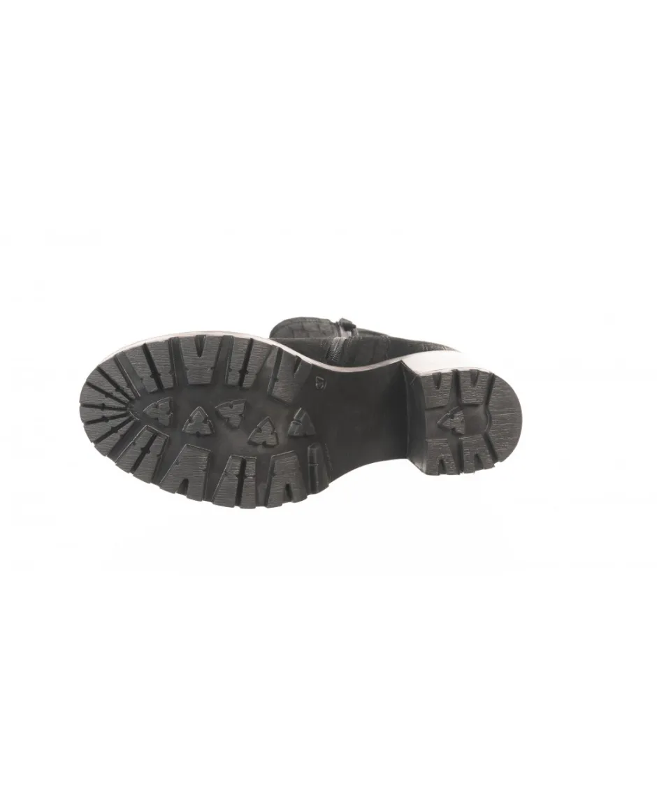 OSMOSE shoes repousse les limites du style avec cette nouvelle bottine biker qui s’impose comme le nouvel indispensable de votre shoesing. Confectionnée en Italie en cuir daim noir embossé croco, elle est montées sur talon carré 8 cm et repose sur une confortable semelle crantée. Elle s’enfilera facilement grâce à son zip latéral. Osez le blazer lisse, pour mettre vos belles jambes en valeur.