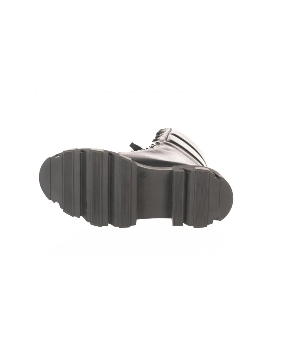 Succombez à ces sublimes et fonctionnelles bottines avec leur Cuir Noir et sa forme montante à lacets à l’ esprit rock, tendance de la saison.