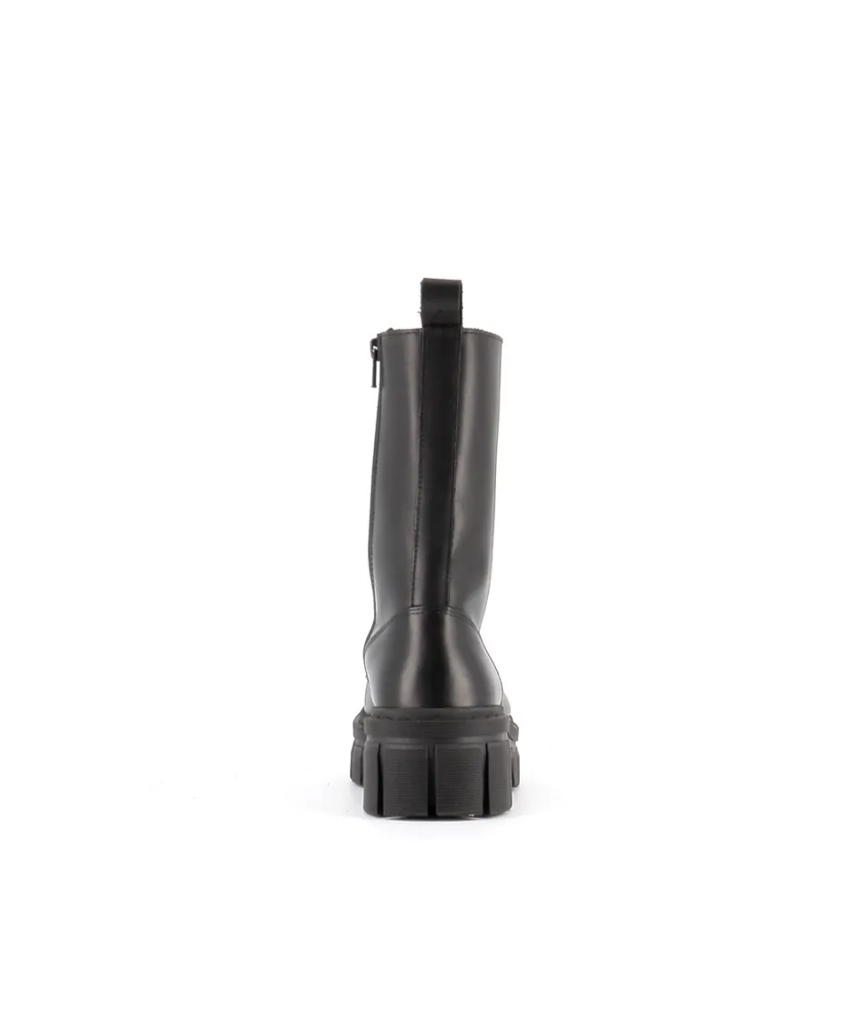 Adoptez un style rock-chic en ville pratique et tendance avec les bottines à lacets Alpha, signées Osmose Paris. Réalisée en Italie en cuir noir, elles sont dotées de fermetures zippées, de lacets et d鈥檜ne épaisse semelle crantée pour un confort optimal.
