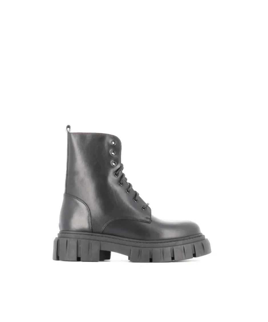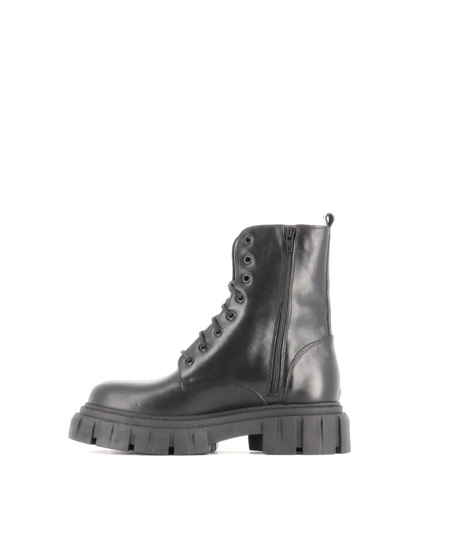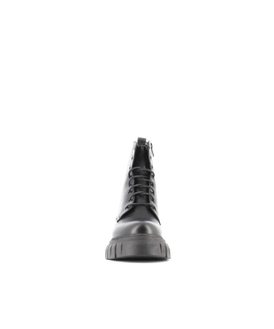 Ajoutez une note de tendance militaire à toutes vos tenues avec les bottines rangers Osmose Paris. Réalisées en Italie en un cuir lisse noir, simplement surmontées d’un laçage élégant et particulièrement adaptées aux escapades urbaines. La semelle à plateforme crantée en caoutchouc offre une tenue parfaite pour tous les terrains et tous les temps.