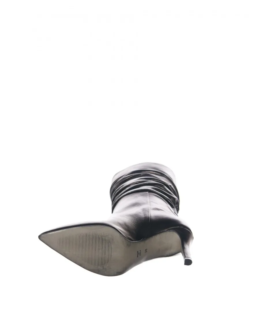 Dans sa collection hivernale, Osmose vous présente ses bottes plissées à talon aiguille en cuir noir. Laissez-vous séduire par ces très élégantes bottes réalisé par Osmose, haute qualité made in Italy.