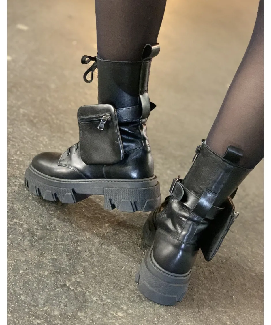 Nouveau coup d’éclat de style signée OSMOSE Shoes Paris 2020: la boots ranger accessoirisée que toutes les fashionistas ajoutent à leur shoesing. Tête de liste dés leur arrivée en boutique et déjà en voie de disparition, attention n’attendez pas pour craquer. Biker à semelle crantée cuir noir à petite ceinture et poches minimalistes, hit de toutes les fashionweeks all made Italy.