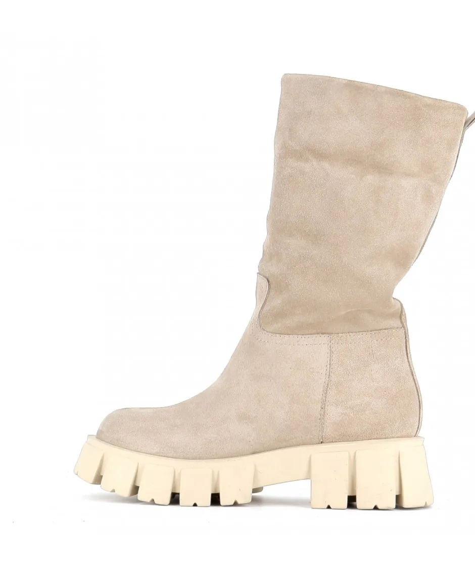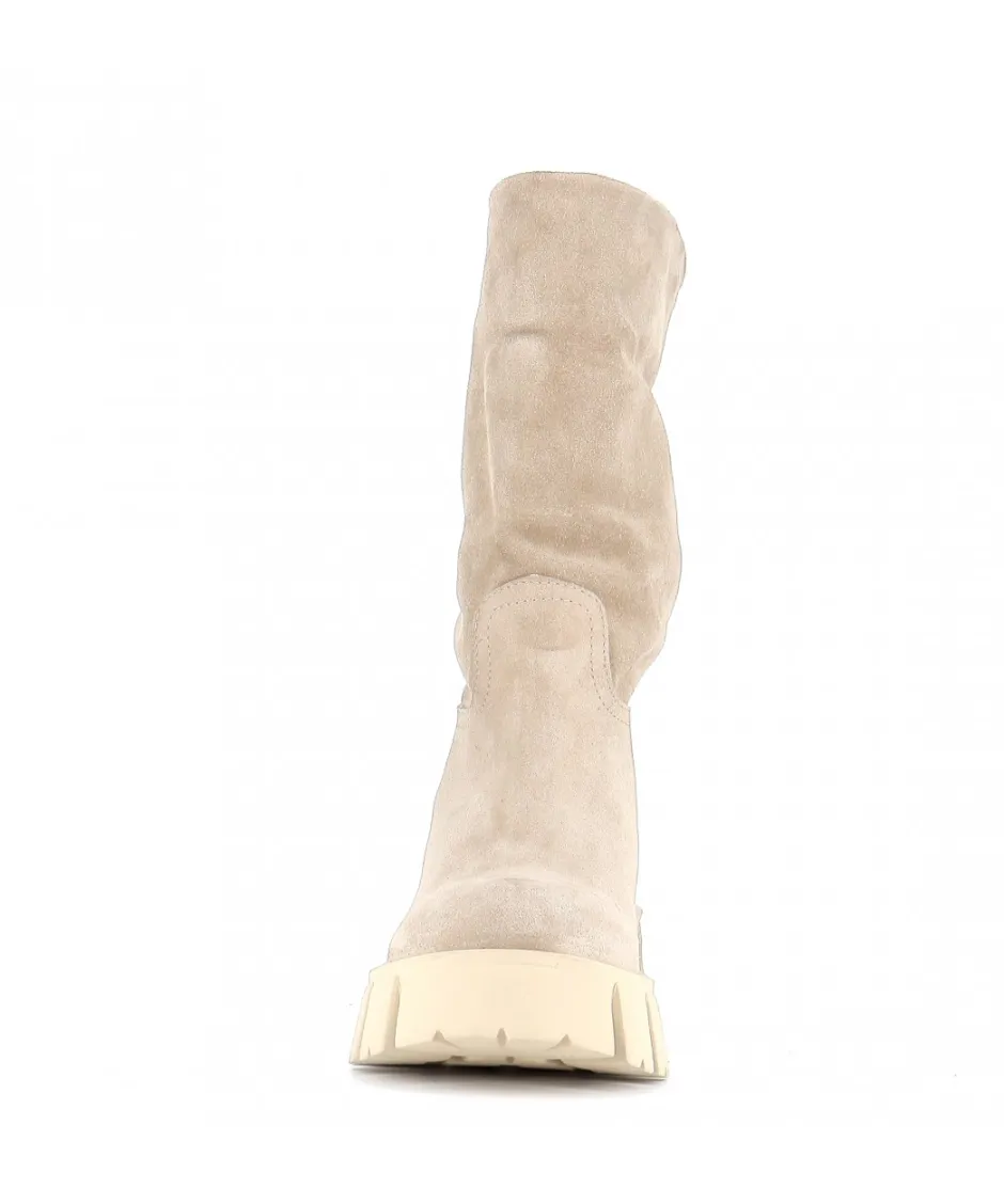 À la fois épurées et subtilement modernes, ces bottes en daim en beige Yoma sont signées Osmose Paris. Confectionnées en Italie en daim souple beige, elles reposent sur une pratique semelle crantée épaisse en caoutchouc et présentent un bout rond, une languette d’enfilage.