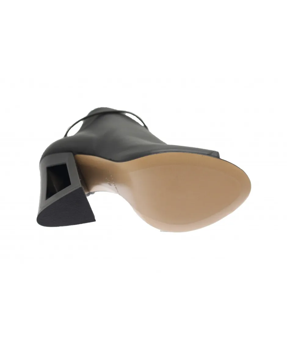 Une nouvelle entrée qui fait déjà beaucoup parler d’elle : bottine/sandale femme à talon large découpée sur une version hit de l’été 2017. OSMOSE COUTURE se réinvente toujours pour vous satisfaire & s’inscrire dans les tendances chaussures femme 2020 sur une version cuir noir talon ton sur ton percé. Une ligne d’exception qui vous sublime à prix dreamissime haute en qualité.