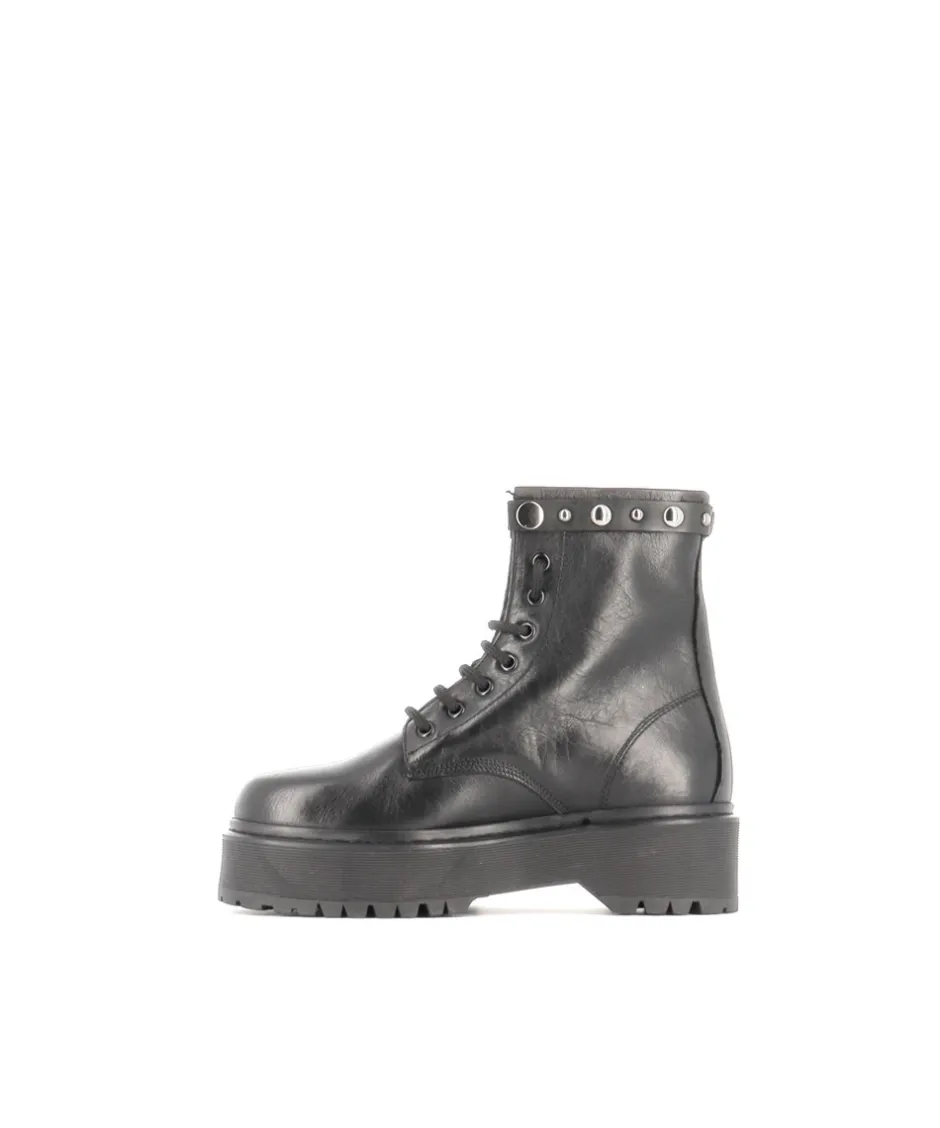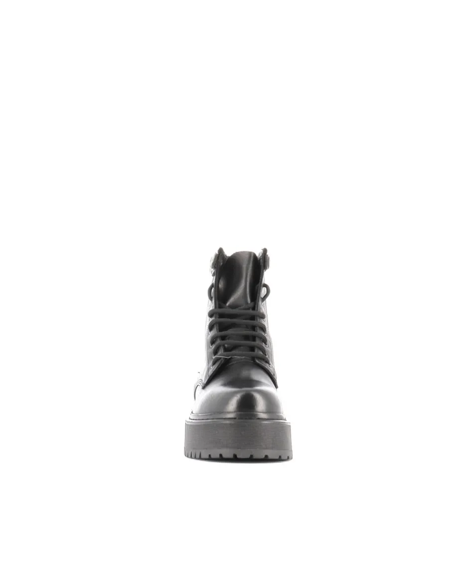 Optez pour un style décalé sur un look féminin à la touche Rock signée OSMOSE Paris. La ligne de rangers bottines femme à lacets cuir lisse noir et semelle plateforme pour un look audacieux et casual.