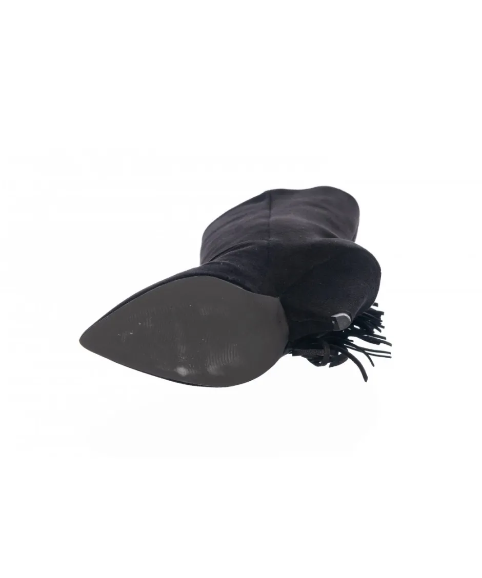 Nouvelle touche grand ouest sur la dernière signature en bottine femme façon « Wild Fringe » la frange est à l’honneur signée OSMOSE Shoes Paris. Superbe bottine daim noir frangées all made in Italy, la paire de boots must have à talon biseauté, montée sur une tige mi haute, retroussée et ornée de fines franges en daim noir. Passe partout du look robe au jeans tout vous sublime à prix doux.