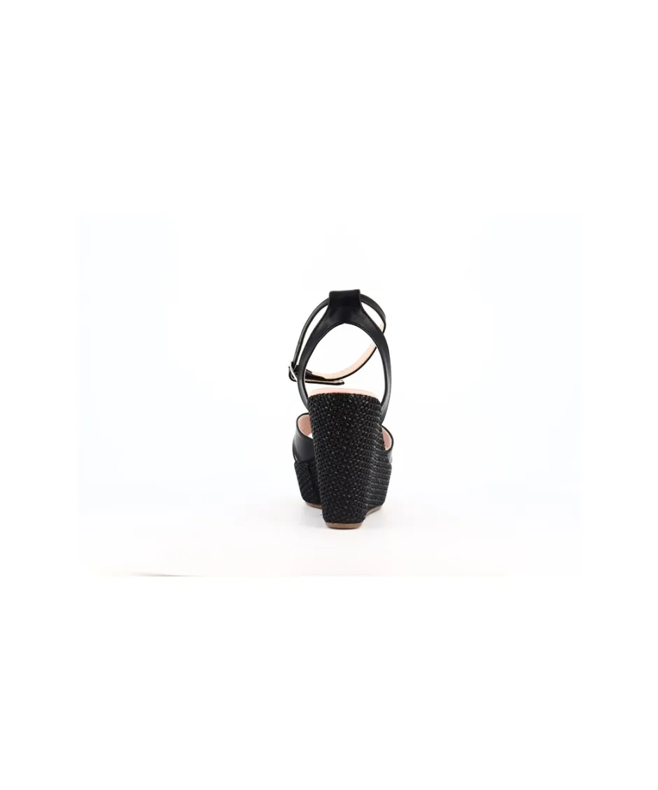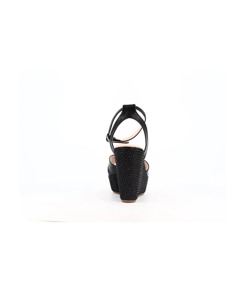 Découvrez les somptueuses sandales compensées signées Osmose Paris, une fusion parfaite entre style et confort. Confectionnées avec expertise en Italie avec du cuir végétal noir de qualité supérieure, ces sandales incarnent l’essence même de l’élégance décontractée. Leur talon en rafia, d’une hauteur de 11 cm avec une plateforme de 4 cm, offre à la fois élévation et stabilité, vous permettant de rester confortable toute la journée. Avec des brides croisées sur le dessus du pied, ces sandales ajoutent une touche de sophistication à n’importe quelle tenue. Parfaites pour une journée en ville ou une escapade estivale, ces sandales seront un ajout remarquable à votre collection de chaussures.