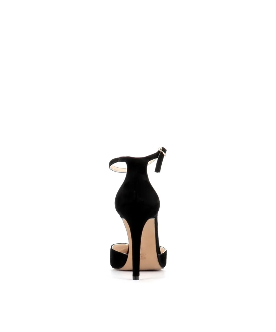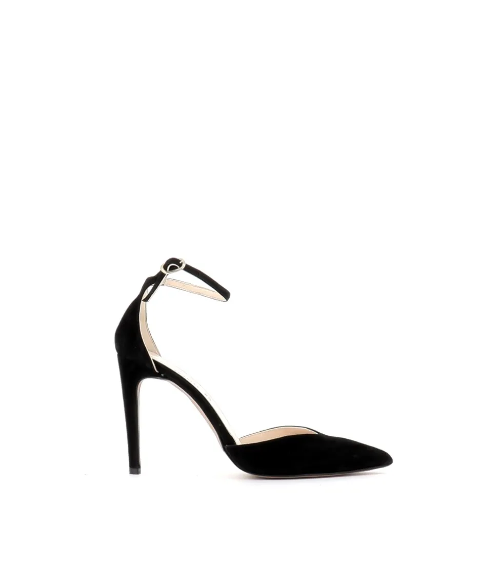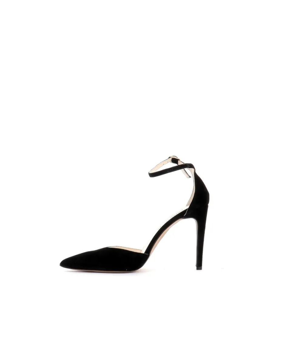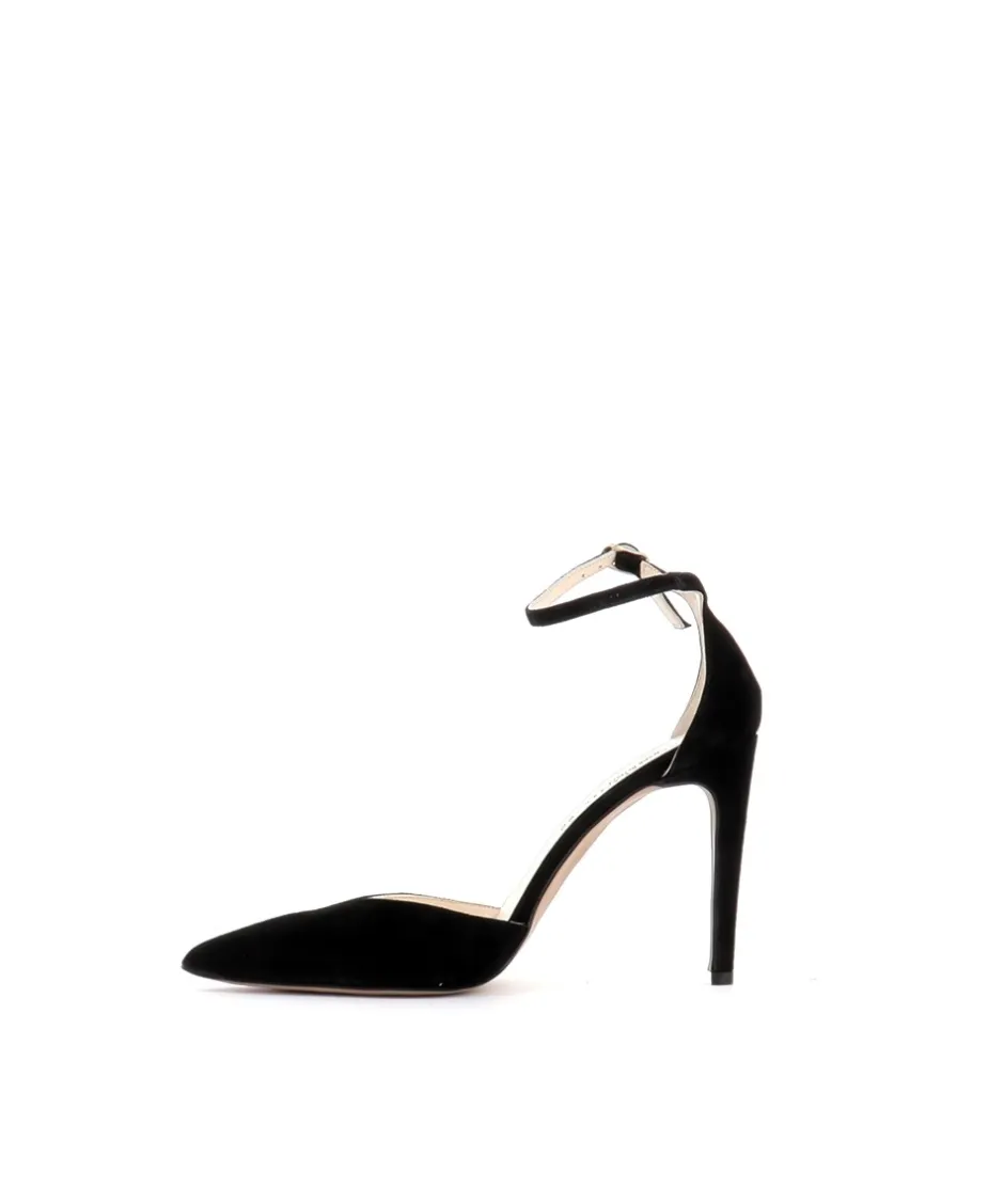 Marchez avec assurance d鈥檜n pas raffiné avec les escarpins Ella, signés Osmose Paris. Façonnés artisanalement en Italie en daim noir et dotés d鈥檜ne élégante bride de cheville, tandis qu’ils reposent sur des talons aiguilles de 10 cm vous garantissant un résultat impeccable.