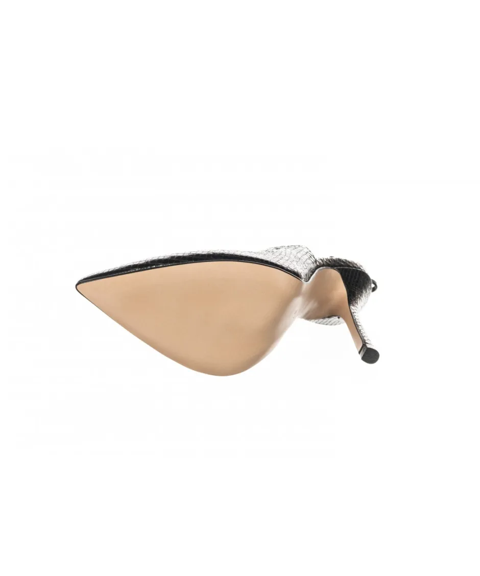 Raffinés avec leurs fines brides enlaçant la cheville et se terminant par un n艙ud, ces escarpins en cuir python noir signés Osmose Shoes Paris. De fabrication italienne, ils sont montés sur un fin talon aiguille et dessinent une élégante silhouette à bout pointu. Portez-les avec une robe imprimée ou simplement avec un jean slim.
