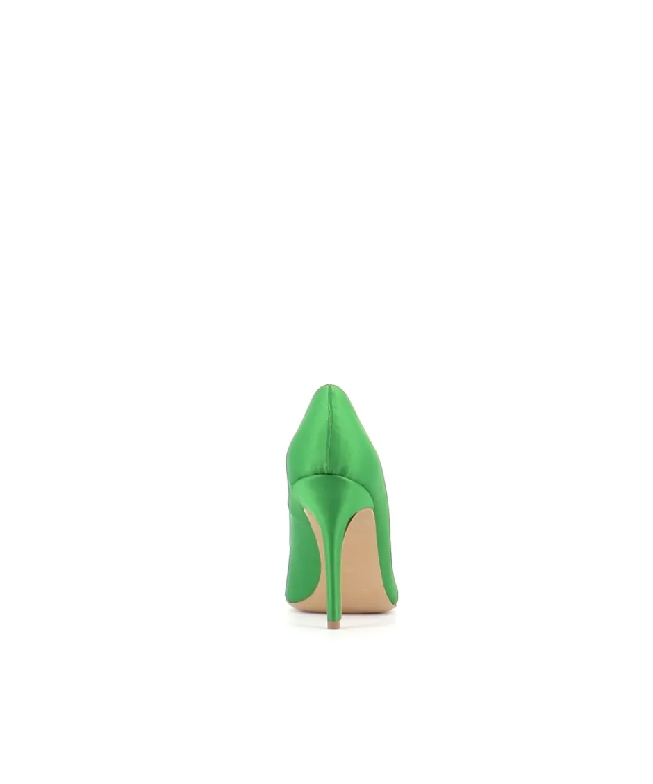 Abordez la nouvelle saison en attirant tous les regards avec les escarpins Tina, signés Osmose Paris. Confectionnés artisanalement en Italie dans du satin brillant vert émeraude, ils présentent un bout pointu et reposent sur un talon chic et confortable de 9,5 cm.