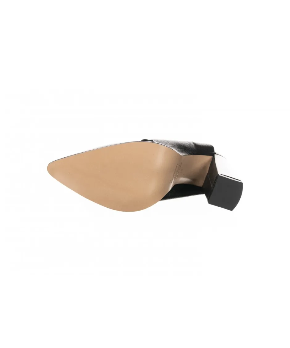 Une ligne de mule avec empiècement au cheville sur une robe de féminité black, une cambrure confortable & moderne en toute circonstance. Une fabrication all made in italy à prix irrésistible.