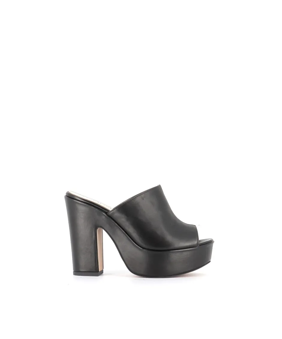 Osmose Paris revisite le sabot mythique des années 70 dans une version plus chic et élégante et vous présente les sandales Wita. Confectionnées artisanalement en Italie en cuir souple noir, elles présentent un bout ouvert et sont montées sur un épais talon carré haut équilibrés par de confortables semelles à plateforme épaisse pour un maintien et un confort spectaculaire.