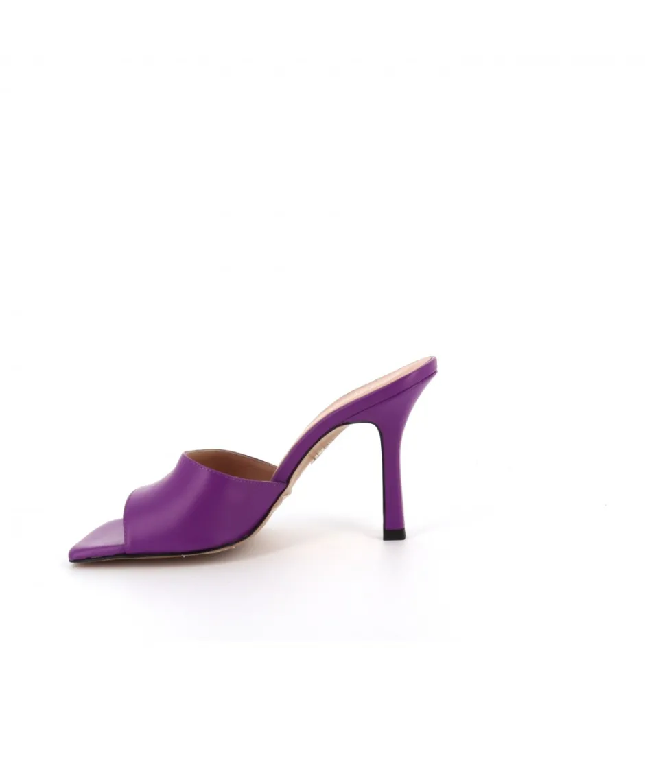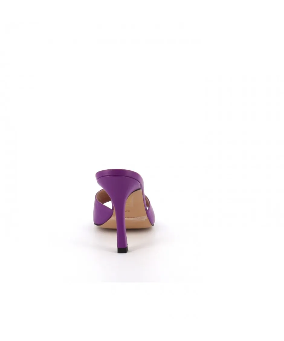 Signées Osmose Shoes Paris, ces mules d’un cuir nappa violet, arborent un bout ouvert carré empreint d’assurance, puis repose sur un talon aiguille fin mi-haut, cette paire épurée sera idéale aussi bien de jour comme de nuit.