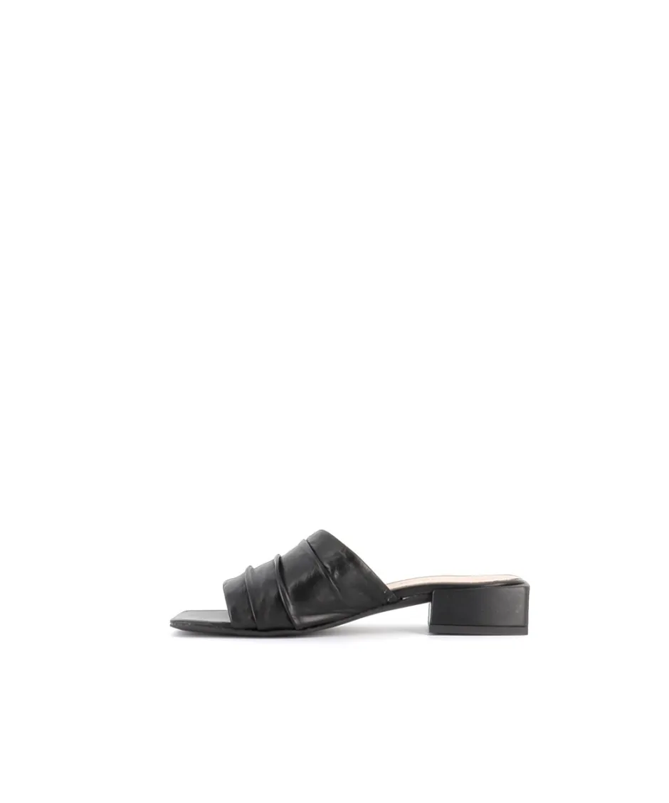 Apportez la touche finale à toutes vos tenues d鈥é avec les mules Livia, signée Osmose Paris. Confectionnée en Italie en cuir noir, ces sandales intemporelles et passe-partout se démarque par sa large bride plissée et son épais talon discret et confortable.