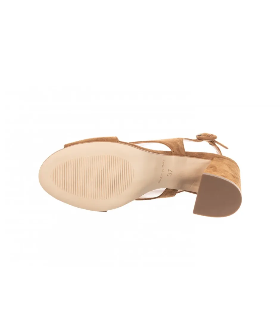 La tendance du moment le talon carré votre référence à shoeser ce printemps été 2020: nouvelle sandale femme à bride daim camel & talon carré pas trop haut signée Osmose Shoes Paris.