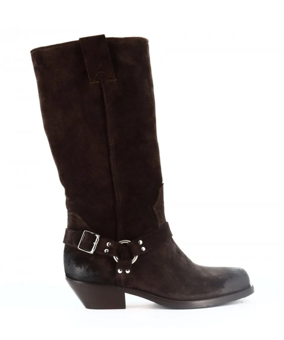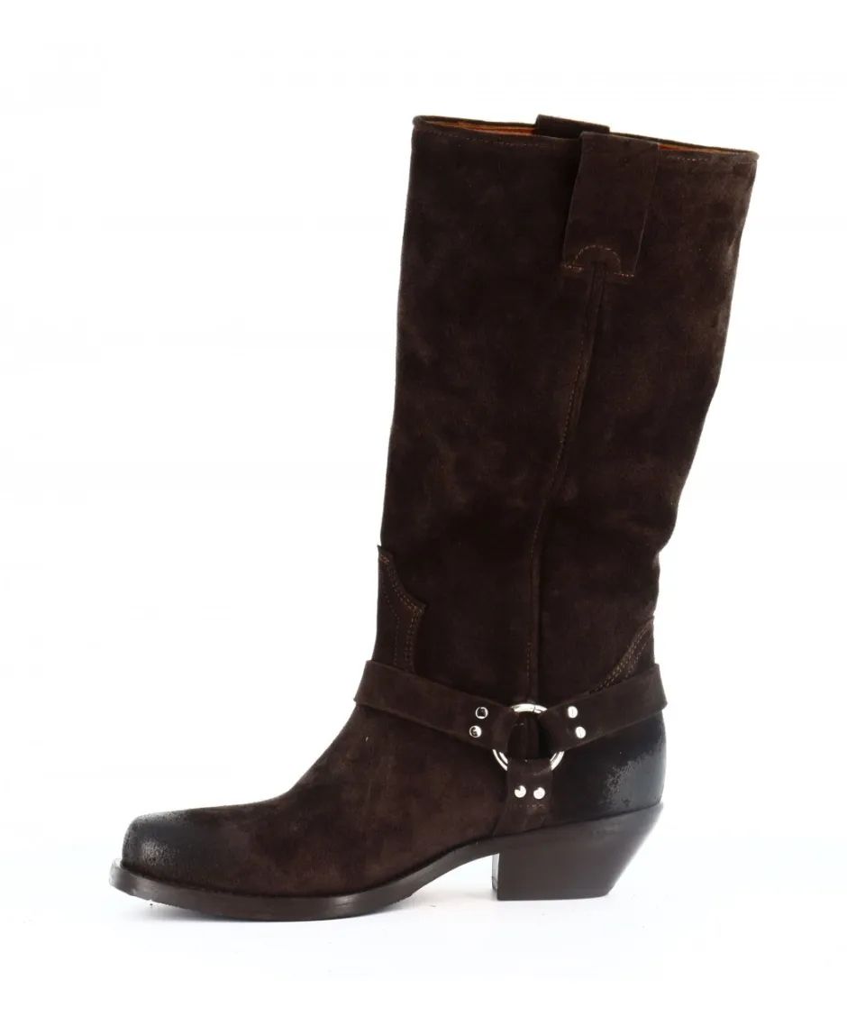 Le daim marron de première qualité confère une texture douce et une allure naturelle à ces bottes. Le bout carré crée une esthétique qui marie habilement le style motarde et western, offrant une polyvalence inégalée à votre garde-robe.