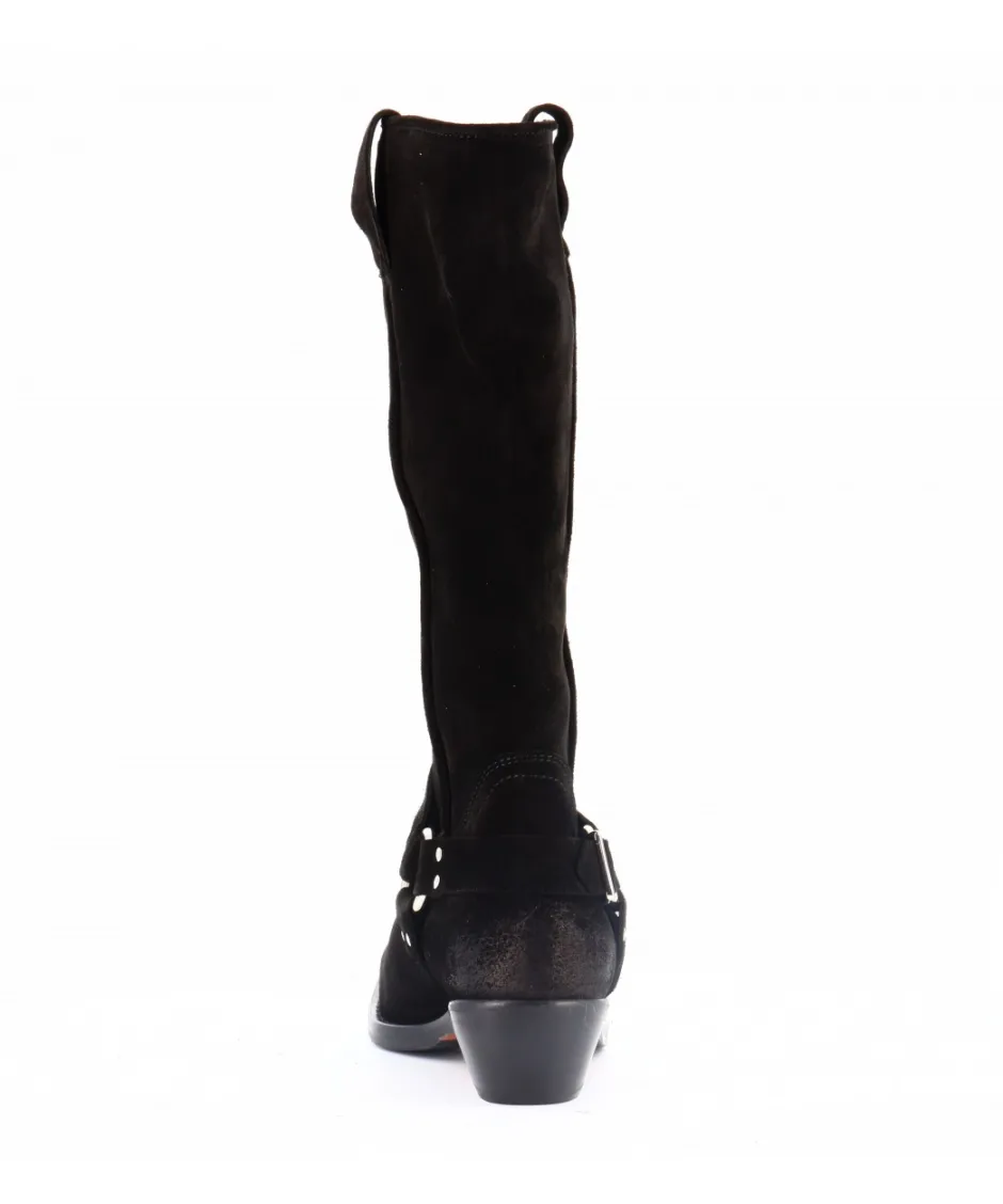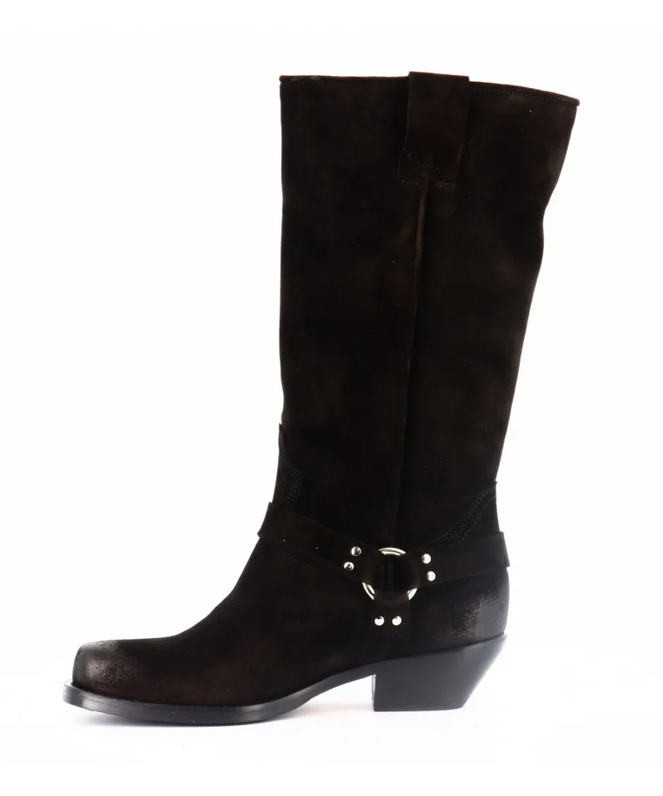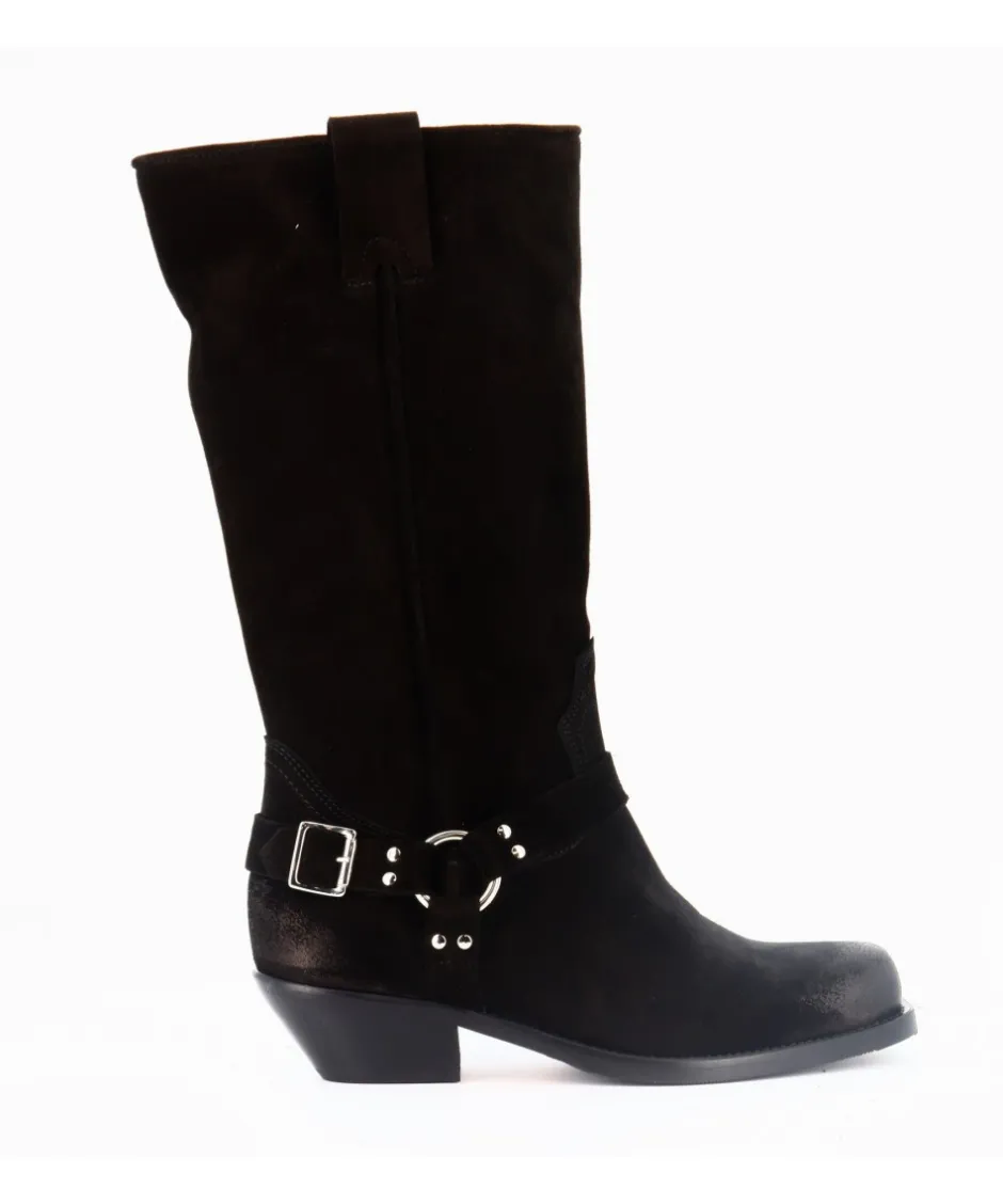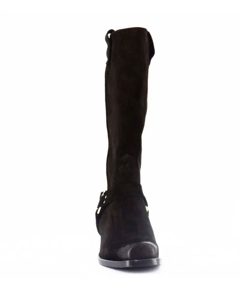 Le daim noir de première qualité confère une texture douce et un charme intemporel à ces bottes. Le bout carré fusionne harmonieusement les influences motardes et western, offrant une polyvalence qui s’adapte à votre style personnel.