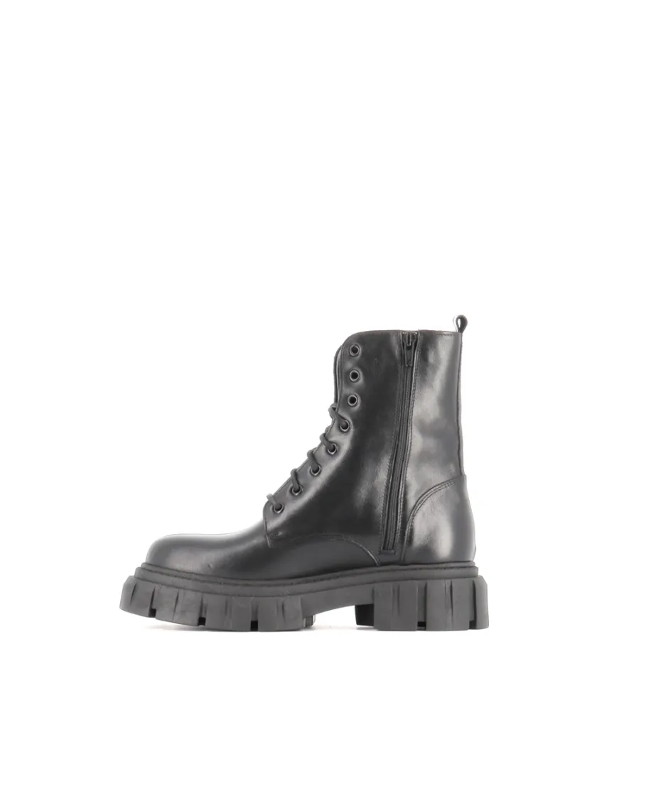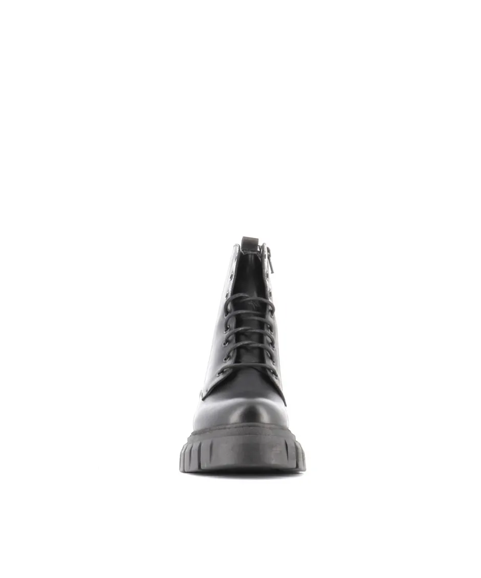 Ajoutez une note de tendance militaire à toutes vos tenues avec les bottines rangers Osmose Paris. Réalisées en Italie en un cuir lisse noir, simplement surmontées d’un laçage élégant et particulièrement adaptées aux escapades urbaines. La semelle à plateforme crantée en caoutchouc offre une tenue parfaite pour tous les terrains et tous les temps.