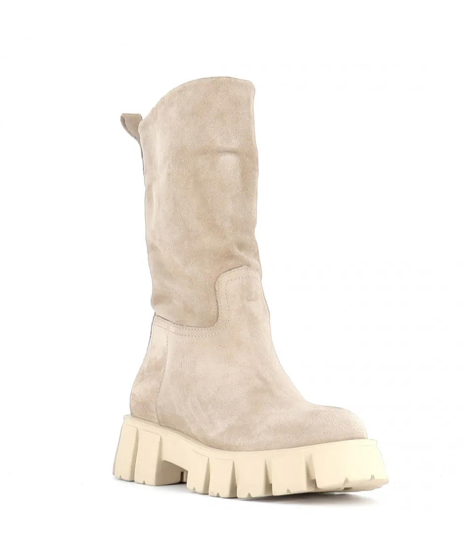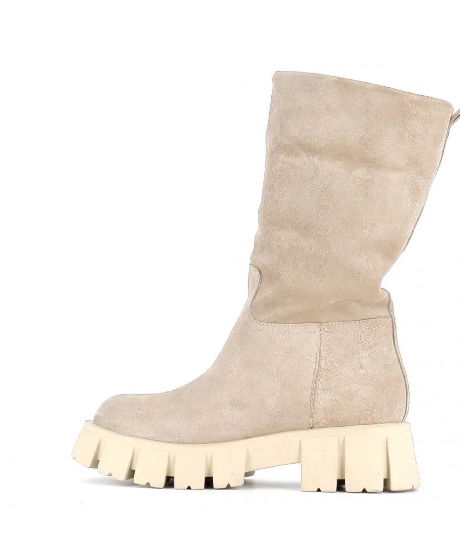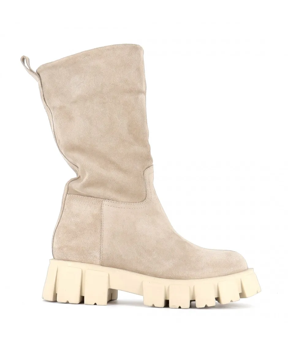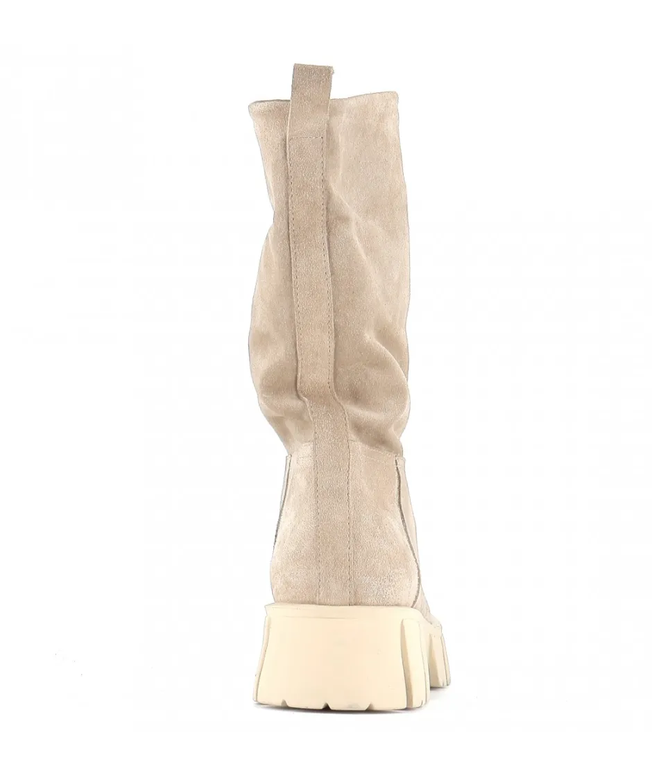 À la fois épurées et subtilement modernes, ces bottes en daim en beige Yoma sont signées Osmose Paris. Confectionnées en Italie en daim souple beige, elles reposent sur une pratique semelle crantée épaisse en caoutchouc et présentent un bout rond, une languette d’enfilage.