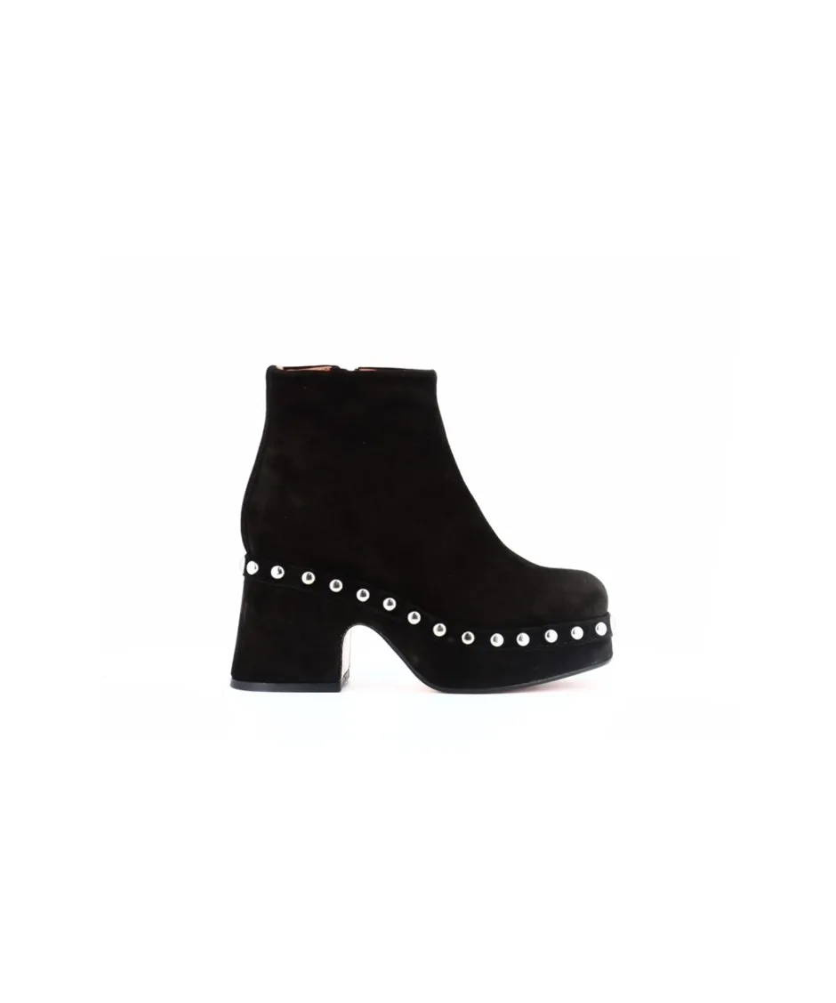 Le daim noir de première qualité confère une texture douce et une élégance naturelle à ces bottines. Le zip latéral facilite l’enfilage tout en ajoutant une touche moderne. La semelle de 7 cm offre une hauteur subtile, idéale pour un confort quotidien.