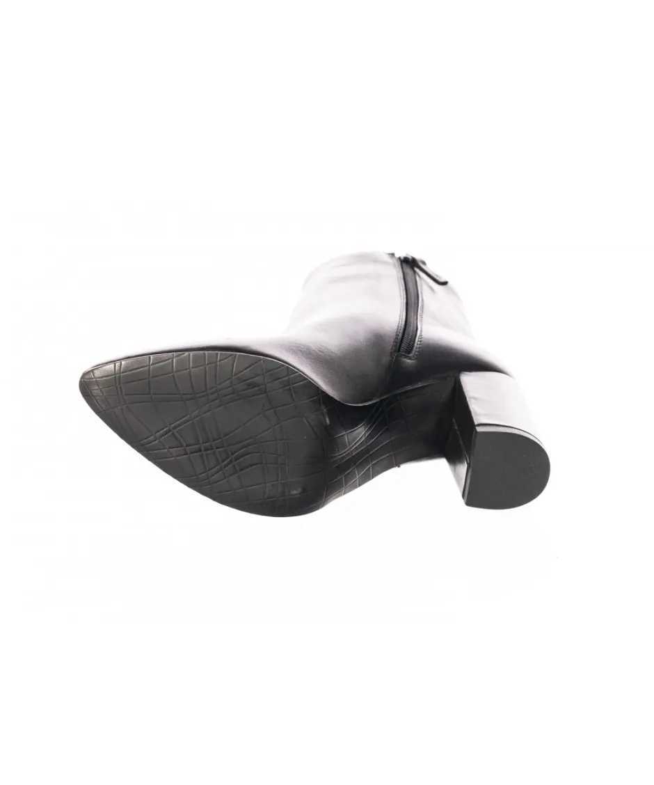 Votre parfait compromis de féminité en bottine cuir noir à talon carré qui vous offre la plus belle tenue et stabilité sur son talon carré de 8 cm signée OSMOSE Shoes Paris.