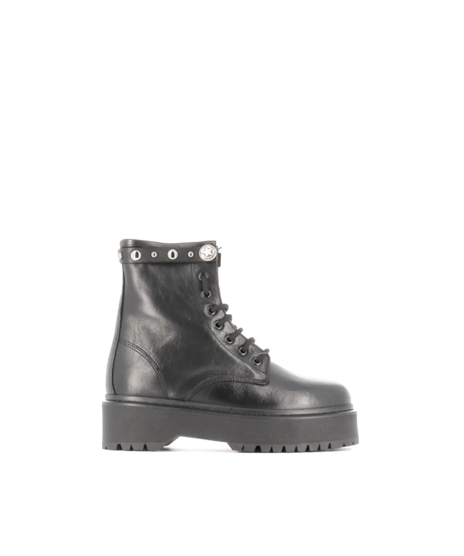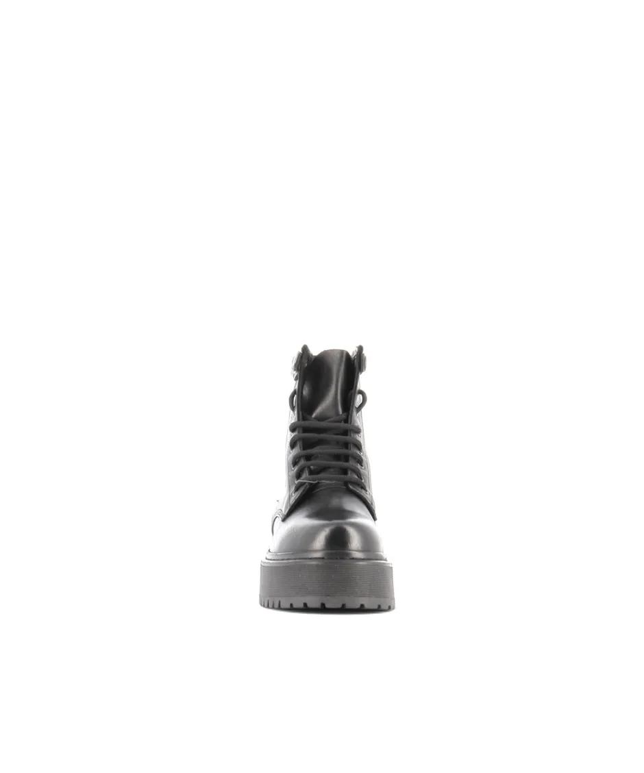 Optez pour un style décalé sur un look féminin à la touche Rock signée OSMOSE Paris. La ligne de rangers bottines femme à lacets cuir lisse noir et semelle plateforme pour un look audacieux et casual.