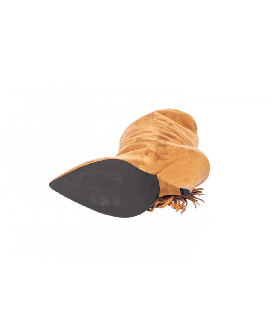 Voici le nouvelle signature OSMOSE COUTURE PARIS en bottine à frange daim camel montée sur talon biseauté.