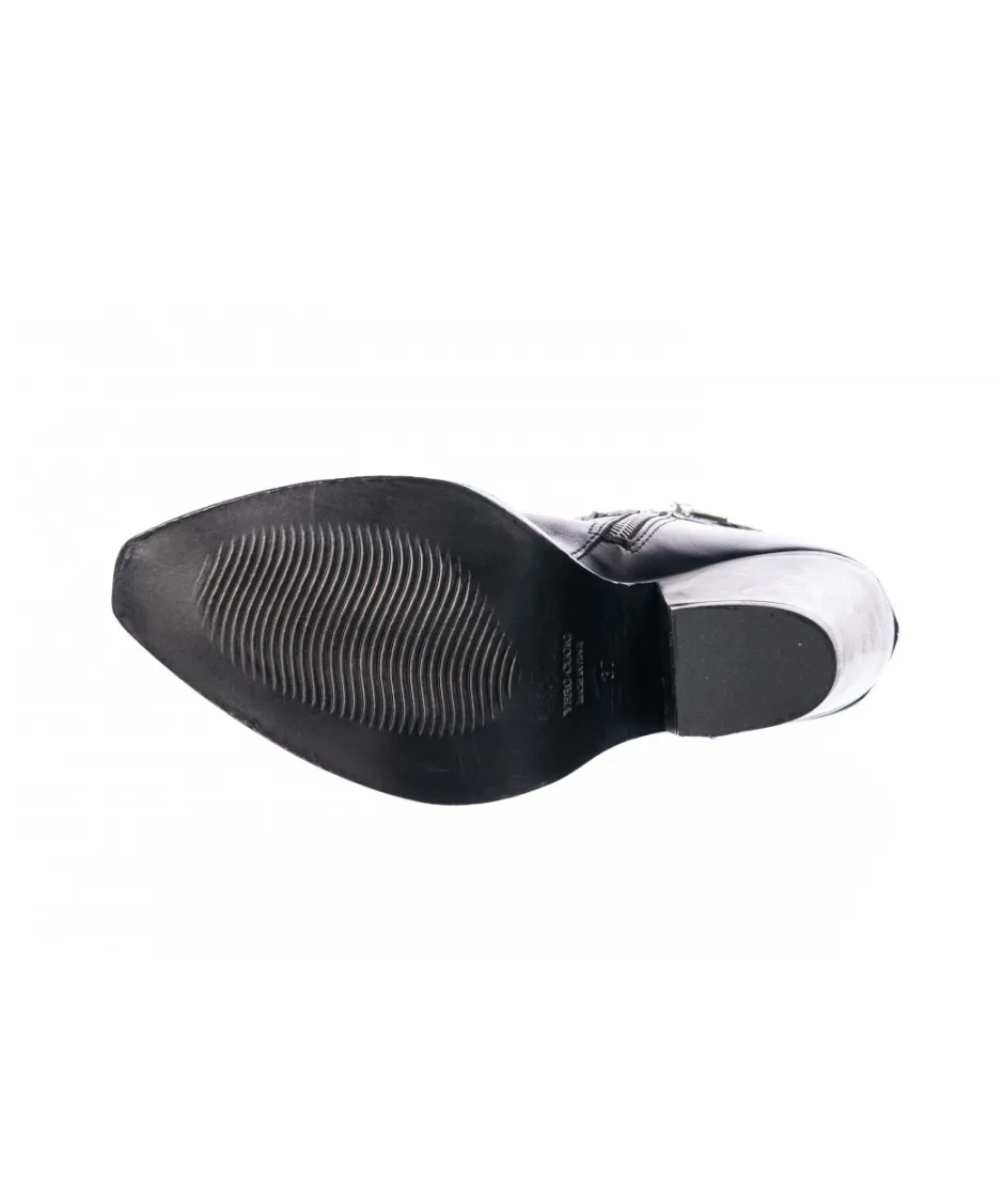 Nouvelle tendance du moment à saisir sur la collection osmose_shoes Paris: la bottine western à talon biseauté, sur sa robe de cuir noir.