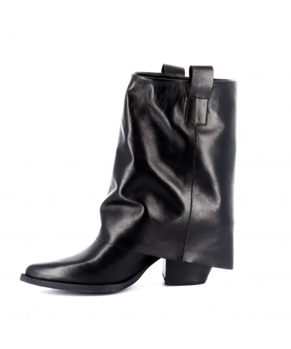 Le daim noir de haute qualité confère une texture luxueuse à ces bottines, tandis que la tige rabattable permet de varier le style selon vos préférences. Avec un bout pointu élégant, ces bottines ajoutent une touche de sophistication à votre look.