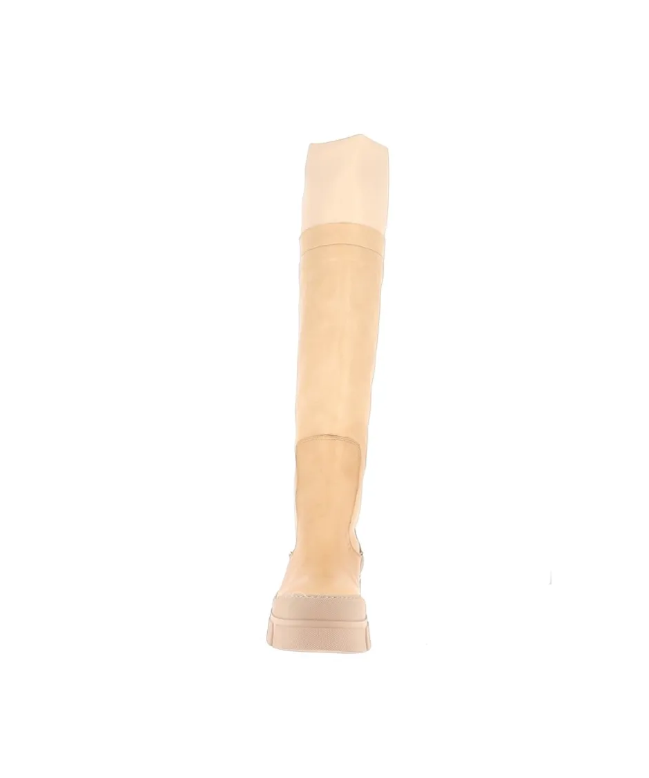 Innovation Osmose Paris, la botte Herman 2 en 1, à la fois botte et cuissarde par une astucieuse et discrète tige interne en cuir camel ton sur ton qui se déploie pour les transformer en cuissarde en 1 clin d’艙il. Elles sont réalisées en Italie en cuir lisse camel et sont dotées d’une robuste semelle résistante en caoutchouc cranté pour une allure rebelle.