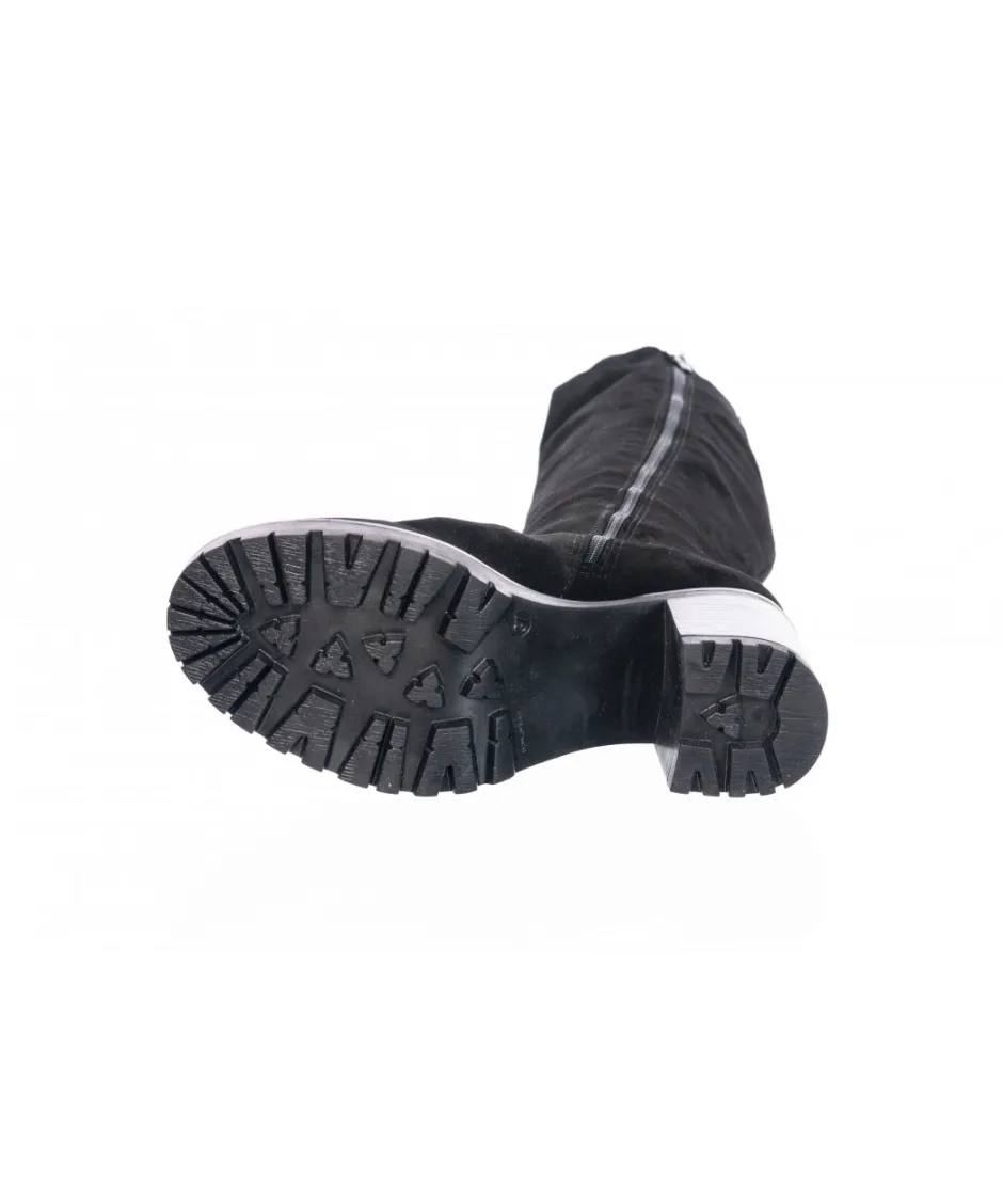 OSMOSE, la marque qui vous offre la nouvelle découpe de botte femme daim noir montante qui élève votre féminité tout en simplicité et confort sur son talon carré.
