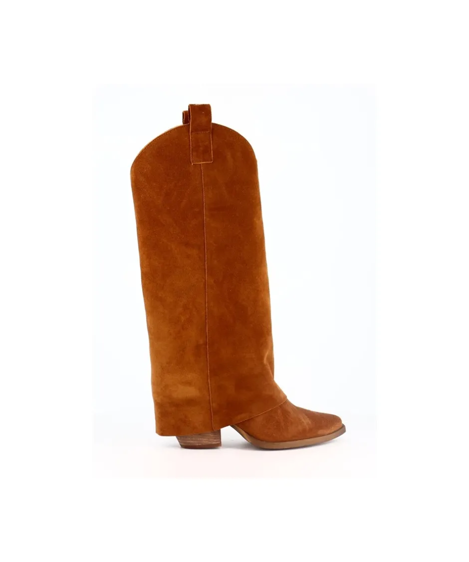 Le daim marron de première qualité confère une texture douce et un aspect chaleureux à ces bottes. L’empeigne rabattable ajoute une touche de variété à votre look. Portez-les relevées pour une silhouette pointue ou rabattues pour une allure décontractée, ces bottes s’adaptent à votre style.