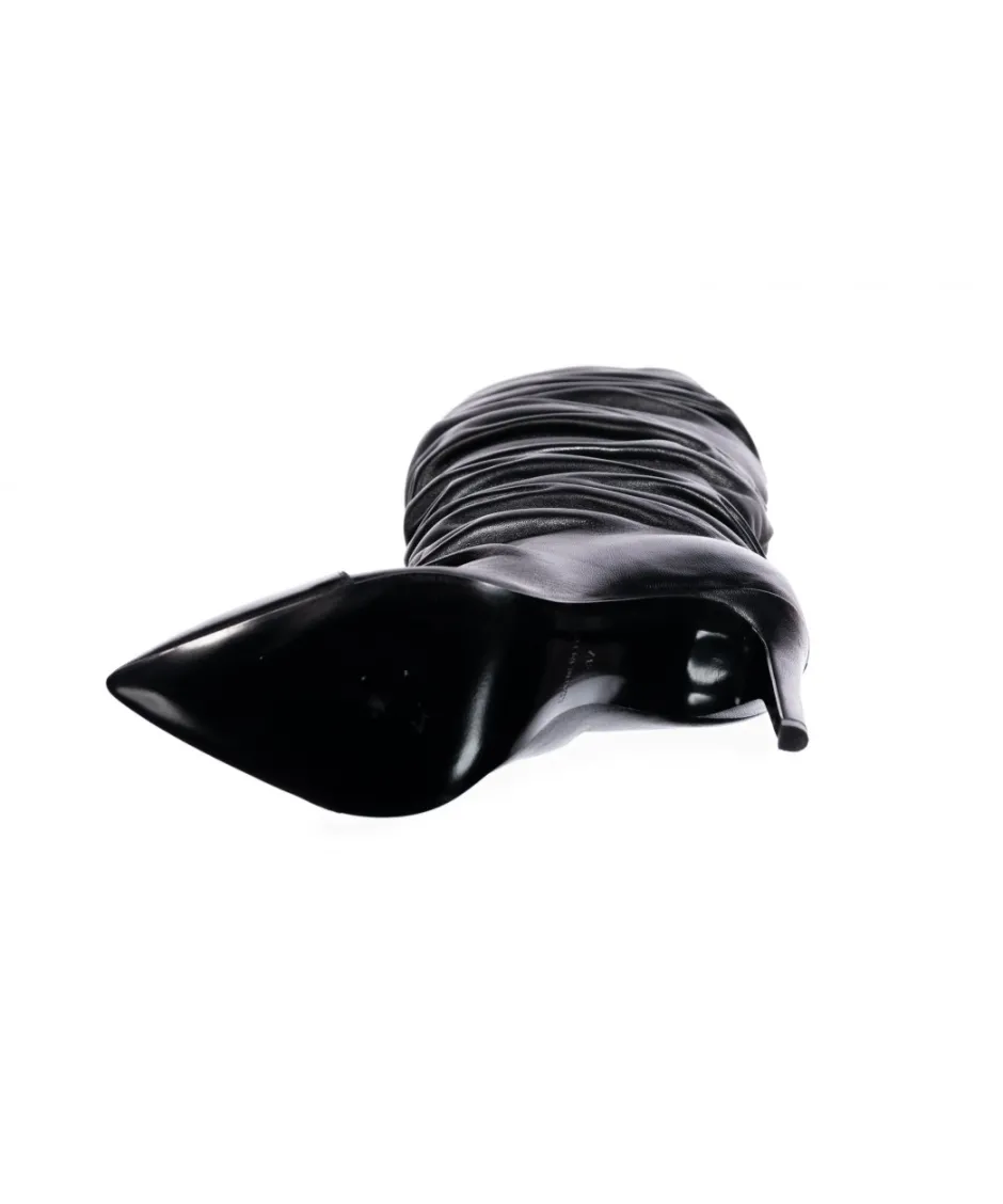 Elle est votre signature de style en botte femme pointue qui combine le plissé de sa robe de cuir noir dont seule OSMOSE à le secret.
