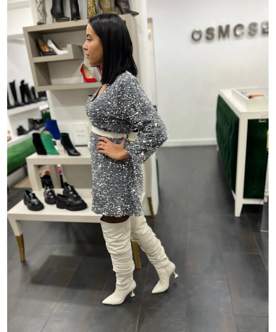 Démarquez-vous avec les cuissardes Pretty, signées Osmose Paris. Confectionnées artisanalement en Italie en cuir beige lisse plissé, cette paire à la silhouette pointue repose sur un talon fin sculpté pyramidal de 9 cm. Une explosion de féminité et de sensualité absolue dans votre garde-robe 2022.