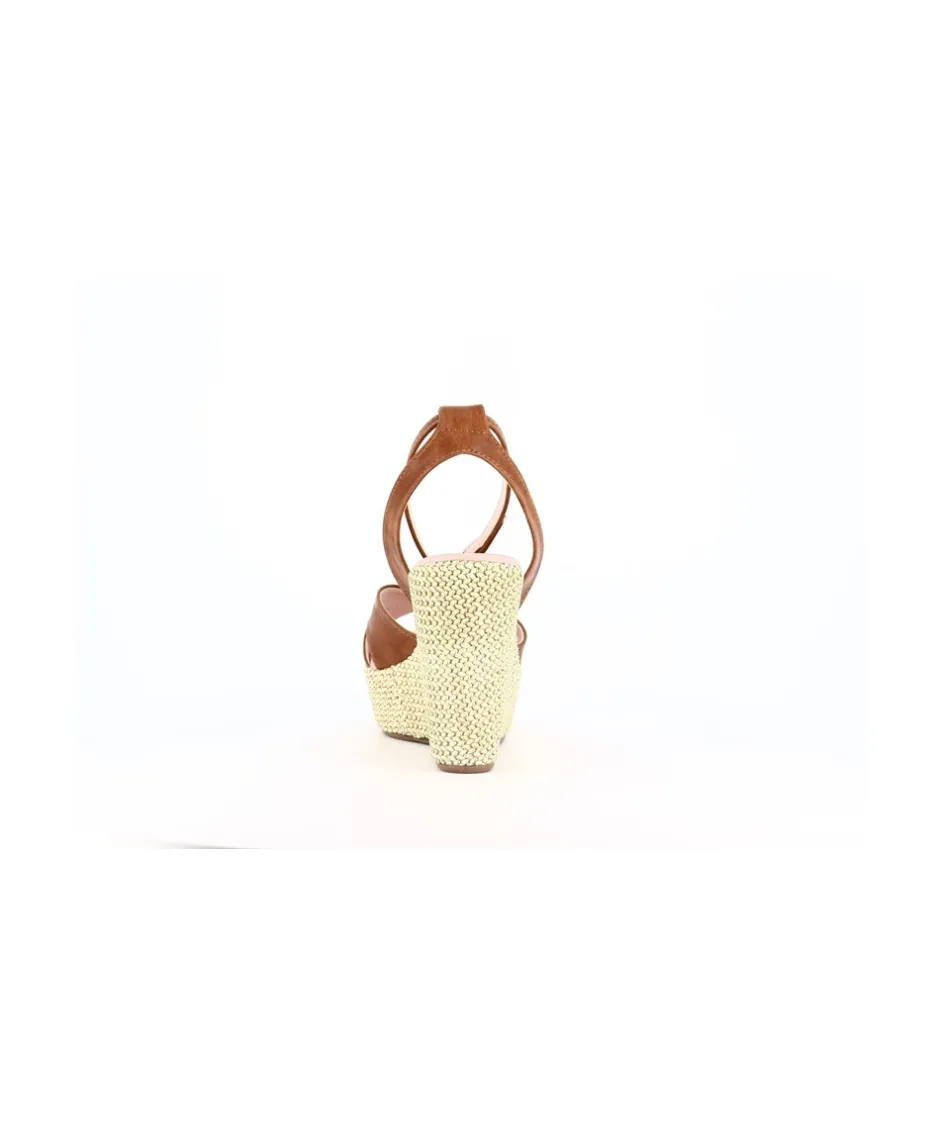 Découvrez les somptueuses sandales compensées signées Osmose Paris, une fusion parfaite entre style et confort. Confectionnées avec expertise en Italie avec du cuir végétal camel de qualité supérieure, ces sandales incarnent l’essence même de l’élégance décontractée. Leur talon en rafia, d’une hauteur de 11 cm avec une plateforme de 4 cm, offre à la fois élévation et stabilité, vous permettant de rester confortable toute la journée. Avec des brides croisées sur le dessus du pied, ces sandales ajoutent une touche de sophistication à n’importe quelle tenue. Parfaites pour une journée en ville ou une escapade estivale, ces sandales seront un ajout remarquable à votre collection de chaussures.