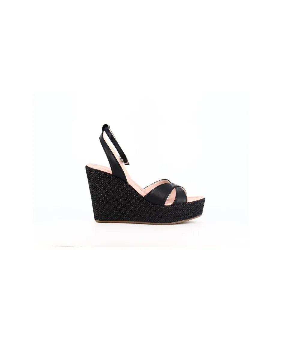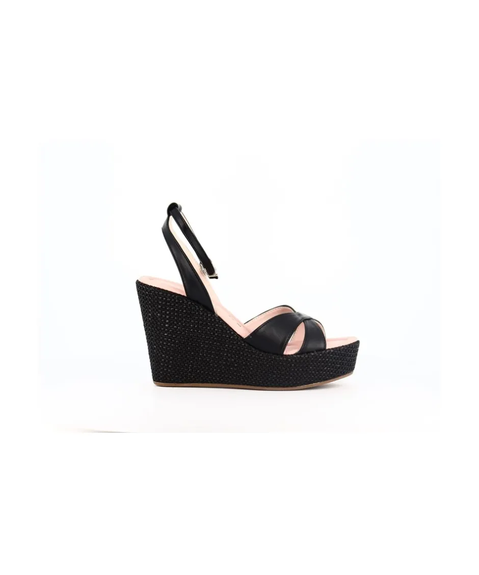 Découvrez les somptueuses sandales compensées signées Osmose Paris, une fusion parfaite entre style et confort. Confectionnées avec expertise en Italie avec du cuir végétal noir de qualité supérieure, ces sandales incarnent l’essence même de l’élégance décontractée. Leur talon en rafia, d’une hauteur de 11 cm avec une plateforme de 4 cm, offre à la fois élévation et stabilité, vous permettant de rester confortable toute la journée. Avec des brides croisées sur le dessus du pied, ces sandales ajoutent une touche de sophistication à n’importe quelle tenue. Parfaites pour une journée en ville ou une escapade estivale, ces sandales seront un ajout remarquable à votre collection de chaussures.