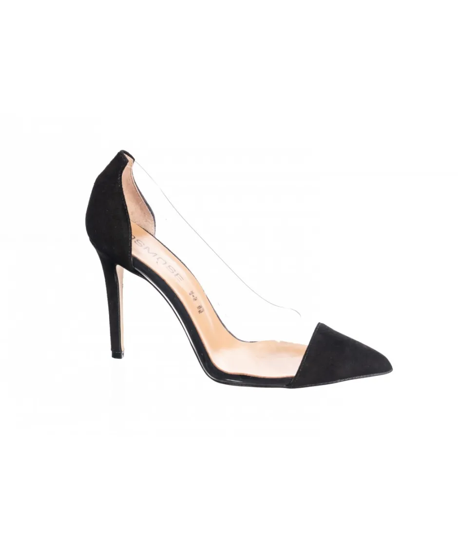 Sublime transparence avec élégance & tendance de retour sur une hauteur plus petite, ligne escarpin « plexi » signée OSMOSE Shoes Paris. Découpe moderne & originale laissant apparaître les côtés de vos pieds en toute transparence & son bout pointu recouvert daim noir. Dévoilez juste le nécessaire de votre féminité sur le must de la tendance à prix irrésistible en made in Italy.