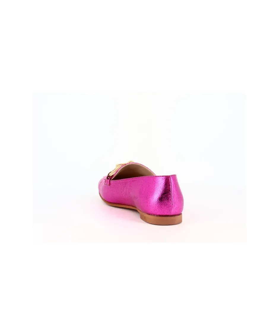 Le vernis craquelé fuchsia ajoute une touche vibrante à ces mocassins, capturant l’attention avec sa couleur audacieuse. Cette finition unique apporte une dimension de dynamisme à votre look, parfait pour celles qui osent se démarquer.