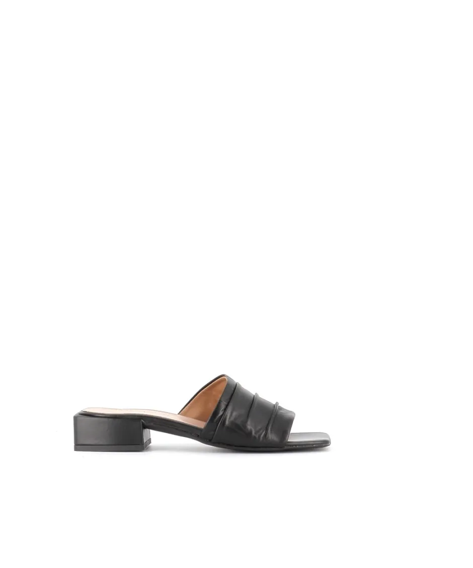 Apportez la touche finale à toutes vos tenues d鈥é avec les mules Livia, signée Osmose Paris. Confectionnée en Italie en cuir noir, ces sandales intemporelles et passe-partout se démarque par sa large bride plissée et son épais talon discret et confortable.