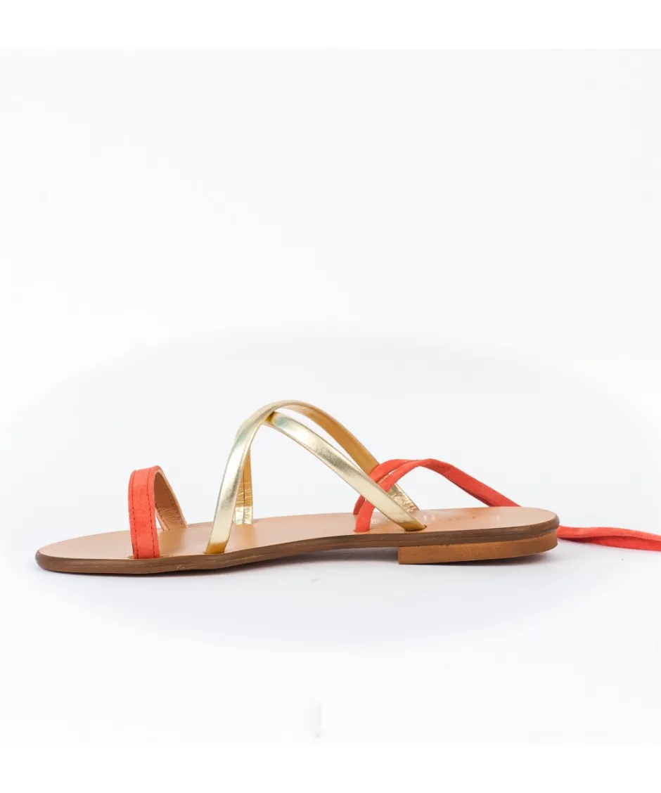 Faites de votre sandale Osmose shoes paris, l’atout charme de votre tenue. Confectionnée en Italie en daim corail et cuir platine, elle est montée sur une semelle plate tout confort et se dote de brides s’enroulant avec élégance autour du pied et de la cheville. Portez-la de jour comme de nuit.