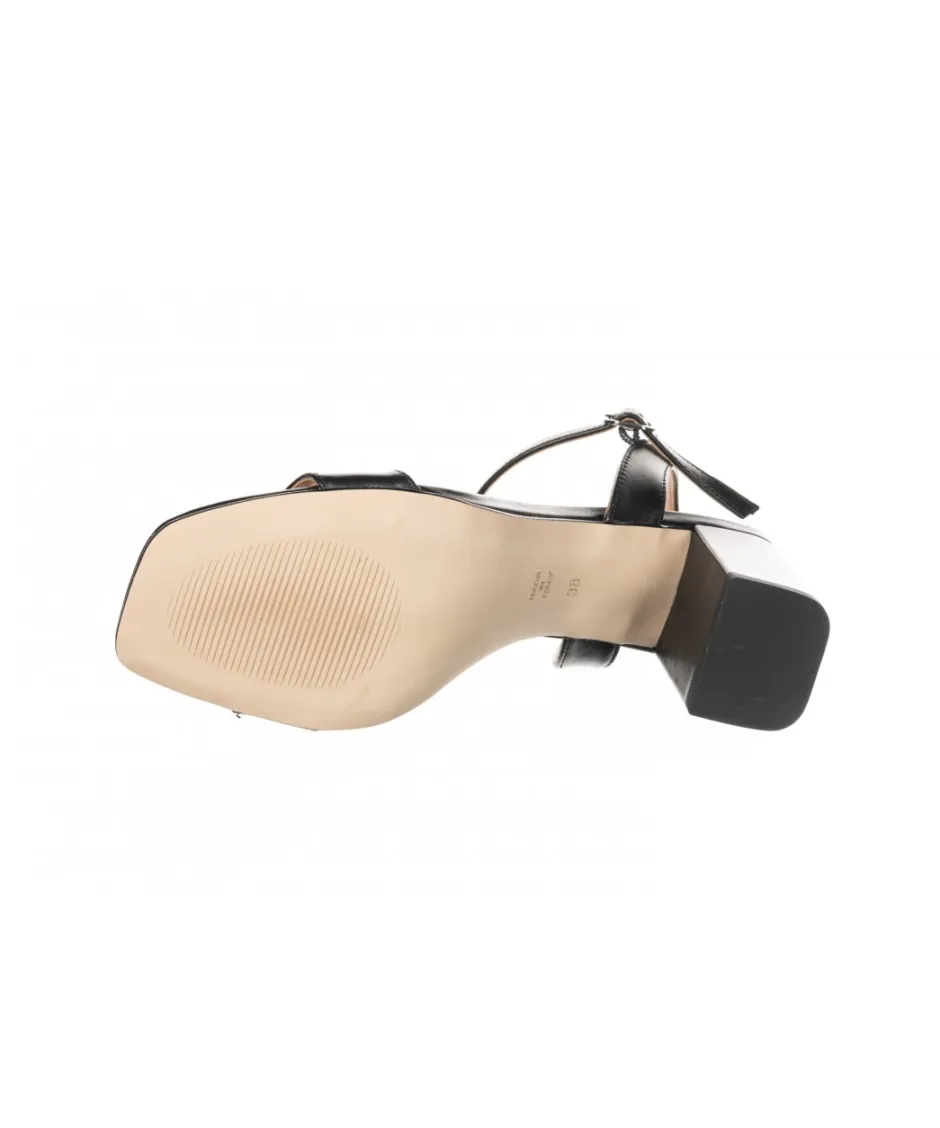 Soyez féminine tout en confort et modernité. sur cette paire de sandale en cuir noir, la ligne parfaite sous des courbes chic & classique.