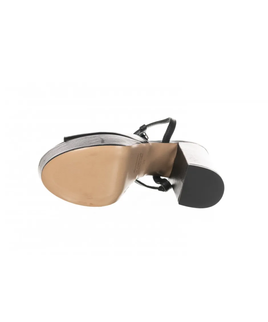Nouvelle sandale futuriste, proposée par Osmose Shoes Paris : composées d’un cuir argenté scintillant, elles sont ainsi surmontées sur un talon bloc vertigineux et leurs épaisses plateformes pour un maintien et un confort optimal.