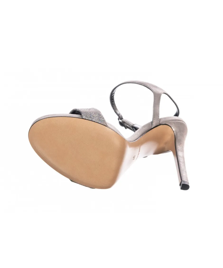 Faites vous une beauté sur cette sandale de rêve à bride, grise argentée ,une de bande glitter sur un talon fin et une cambrure si légère et si agréable.