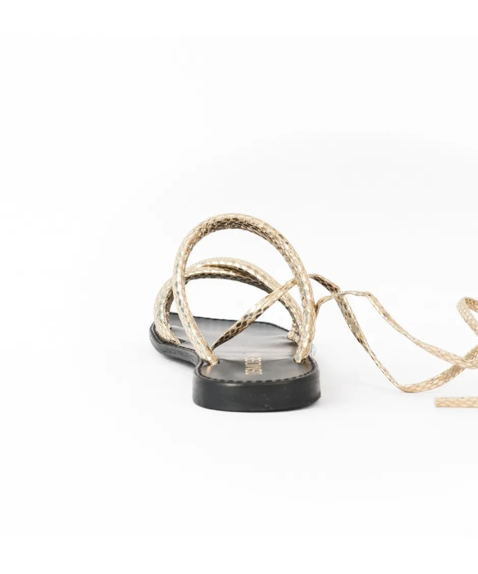 Faites de votre sandale Osmose shoes paris, l’atout charme de votre tenue. Confectionnée en Italie en cuir platine embossé python, elle est montée sur une semelle plate tout confort et se dote de brides s’enroulant avec élégance autour du pied et de la cheville. Portez-la de jour comme de nuit.