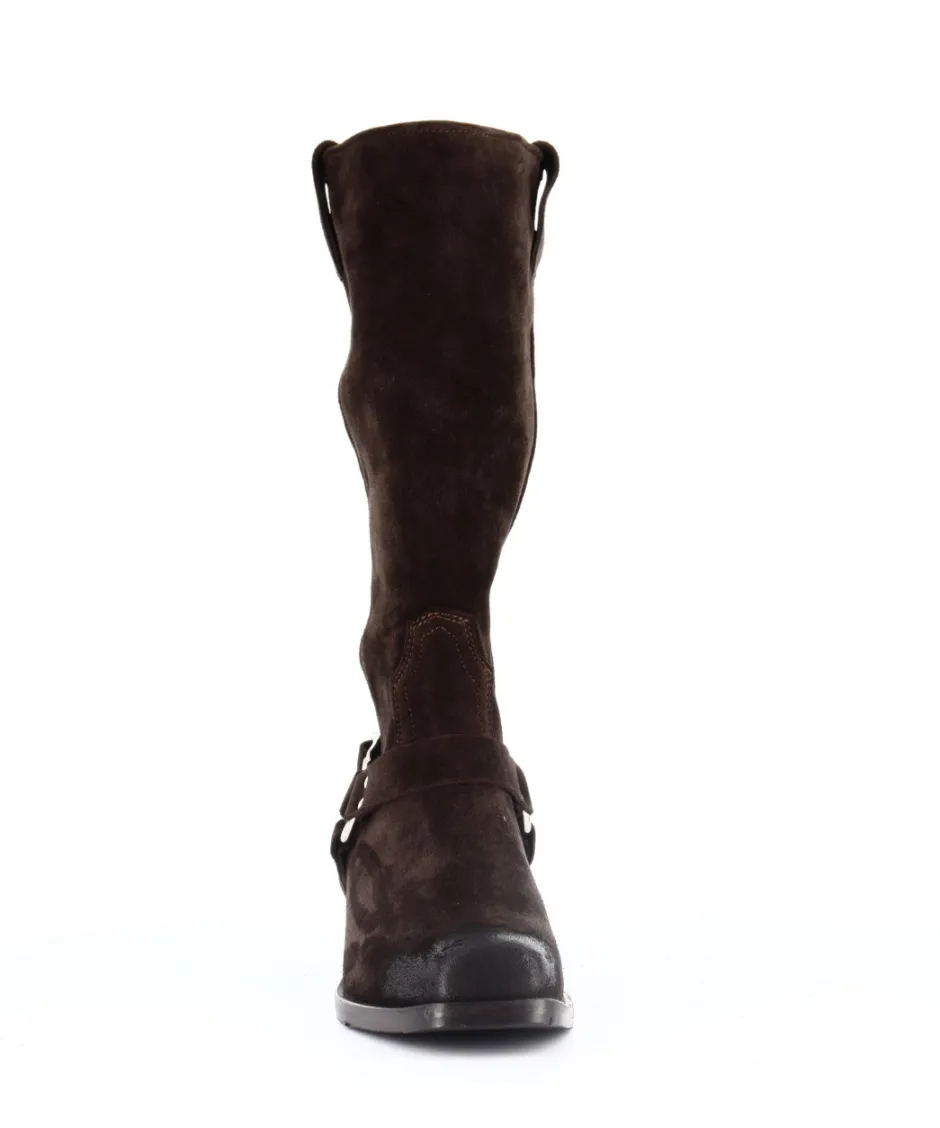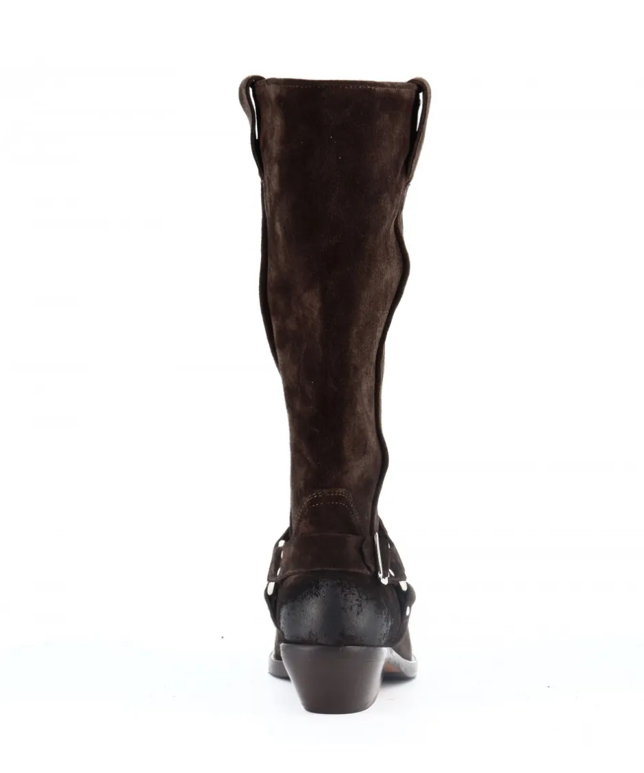 Le daim marron de première qualité confère une texture douce et une allure naturelle à ces bottes. Le bout carré crée une esthétique qui marie habilement le style motarde et western, offrant une polyvalence inégalée à votre garde-robe.