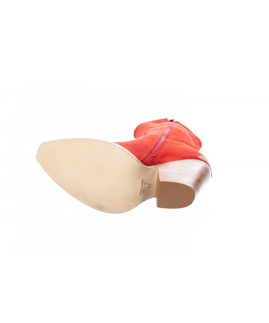 Must have du far ouest de retour sur une version printemps été haute en séduction: Bottine tiag daim rouge à talon haut biseauté signée OSMOSE Couture Paris. Elle est la star depuis cet hiver et se décline à toutes les sauces, d’Isabelle Marrant à Saint Laurent. Osmose vous offre la parfaite note séduction haute en style pour habiller vos looks de cachet moderne en made in Italy, sans vous ruiner.